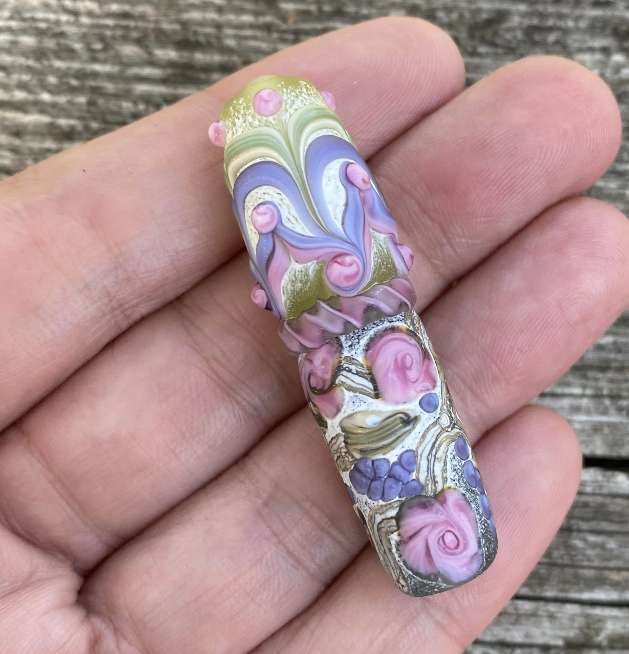Set of 12 Lampworked glass beads. in blue, ivory and orange. 4 tabular beads, 1 long ornate bead, 1 barrel bead, and 6 asst. rounds and spacers. Long ornate measures approx. 16 × 34mm. Acid etched. Kiln annealed. Price includes shipping within the US. Actual shipping costs everywhere else.