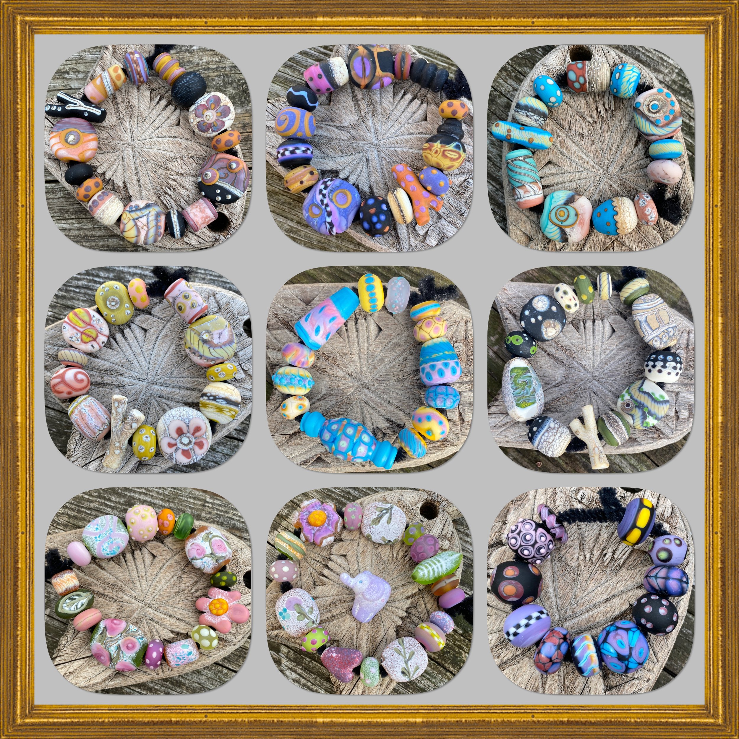 I’ve been busy lately making what I call “Bracelet Bundle“ bead sets; sets of 12-15 or so beads. I sell these sets through the Lampwork Marketplace group on Facebook. Anything that doesnt sell there will be moved over here to my shop. I am grateful that these sets are doing so well there that I rarely end up re-listing them. Thanks so much to my customers old, and new. I am so grateful for your love and support of my work.